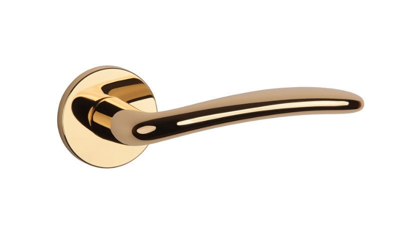 Klamka APRILE Ambrosia, rozeta okrągła R slim 7 mm, kolor złoty polerowany (LG)