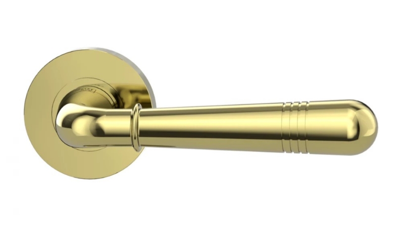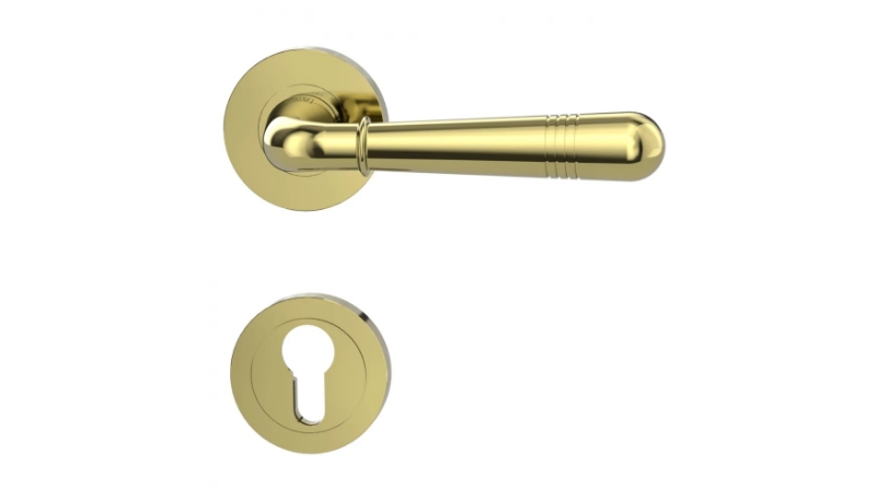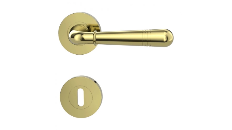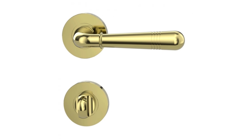 Klamka GRIFFWERK Fabia, kolor mosiądz błyszczący, z dolną rozetą WC (do drzwi o grubości skrzydła 50 mm)