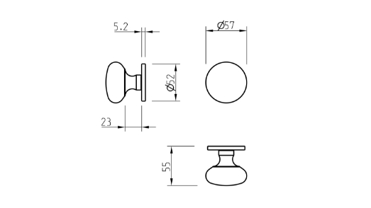Gałka dostępna w wariantach: jednostronna stała; dwustronna ruchoma; dwustronna stała.