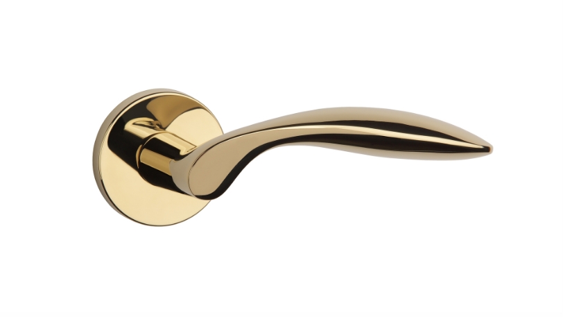 Klamka APRILE Gerbera, rozeta okrągła R slim 7 mm, kolor złoty matowy (KG)