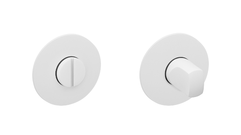 Zestaw klamek ze stali nierdzewnej na rozetach okrągłych o grubości 2mm. Łatwy montaż na adapter wewnętrzny na tak zwany „klik”. Podwójny system sprężyn poziomujących rękojeści, zespolony z rozetą podklamkową. Kwadratowy trzpień 8×100 mm. Montaż na dwie śruby M6, niewidoczne po zamontowaniu., kolor 152