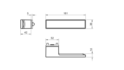 Zestaw klamek na rozetach prostokątnych 5mm o szer. 52mm. Łatwy montaż na adapterze metalowym na tak zwany „klik”. Podwójny system sprężyn poziomujących rękojeści. Kwadratowy trzpień 8×100 mm. Montaż na dwie śruby M6, niewidoczne po zamontowaniu. Model bez wstawki dekoracyjnej do samodzielnej aranżacji. kolor 96