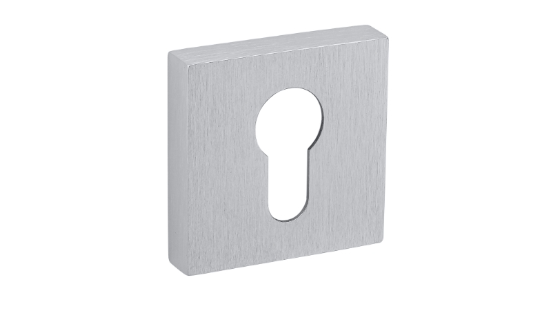 Zestaw klamek na rozetach kwadratowych 52mm. Łatwy montaż na adapterze metalowym na tak zwany „klik”. Podwójny system sprężyn poziomujący rękojeści. Kwadratowy trzpień 8×100 mm. Montaż na dwie śruby M6, niewidoczne po zamontowaniu. kolor 96