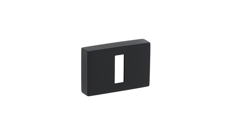 Zestaw klamek na rozetach prostokątnych 5mm o szer. 52mm. Łatwy montaż na adapterze metalowym na tak zwany „klik”. Podwójny system sprężyn poziomujących rękojeści. Kwadratowy trzpień 8×100 mm. Montaż na dwie śruby M6, niewidoczne po zamontowaniu. kolor 155