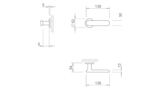 Zestaw klamek na rozetach okrągłych o grubości 5mm. Łatwy montaż na adapter wewnętrzny na tak zwany „klik”. Podwójny system sprężyn poziomujących rękojeści, zespolony z rozetą podklamkową. Kwadratowy trzpień 8×100 mm. Montaż na dwie śruby M6, niewidoczne po zamontowaniu. kolor 158