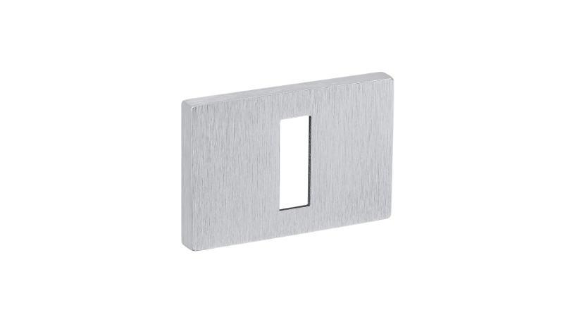 Zestaw klamek na rozetach prostokątnych 5mm o szer. 52mm. Łatwy montaż na adapterze metalowym na tak zwany „klik”. Podwójny system sprężyn poziomujących rękojeści. Kwadratowy trzpień 8×100 mm. Montaż na dwie śruby M6, niewidoczne po zamontowaniu.
