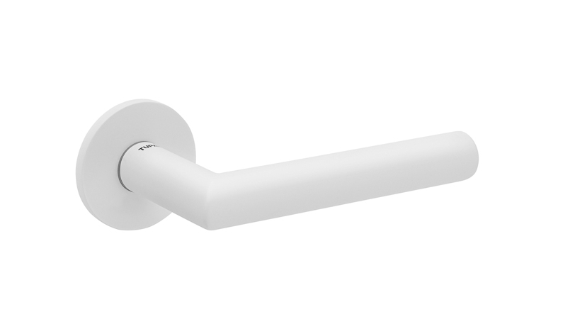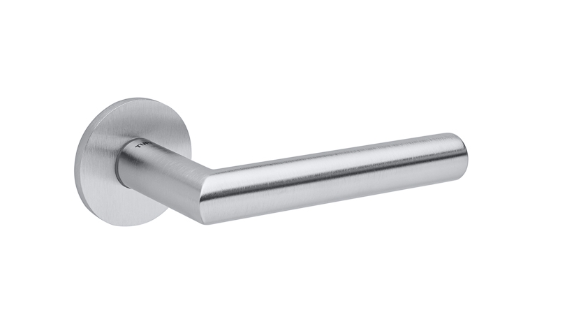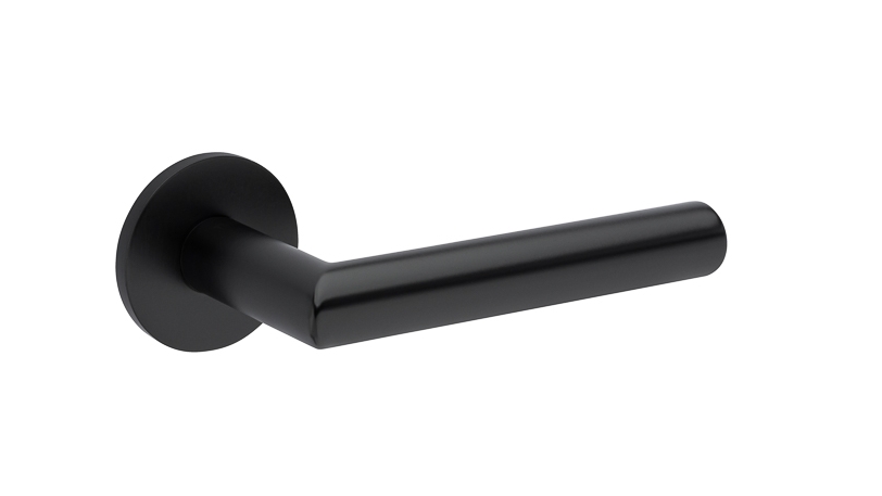 Zestaw klamek na rozetach kwadratowych o grubości 5mm. Łatwy montaż na adapter wewnętrzny na tak zwany „klik”. Podwójny system sprężyn poziomujących rękojeści, zespolony z rozetą podklamkową. Kwadratowy trzpień 8×100 mm. Montaż na dwie śruby M6, niewidoczne po zamontowaniu.