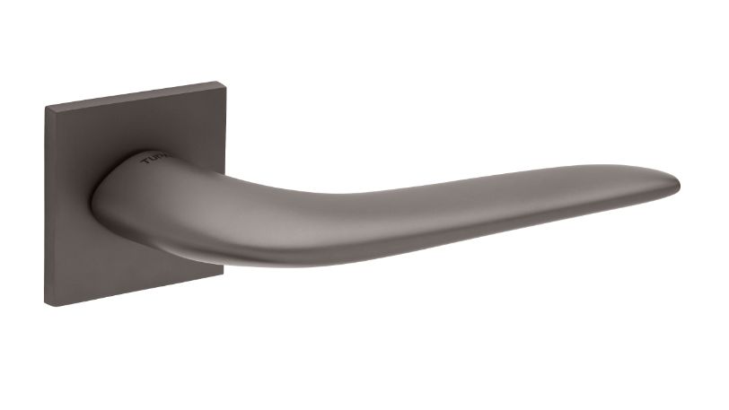 Zestaw klamek na rozetach kwadratowych o grubości 5mm. Łatwy montaż na adapter wewnętrzny na tak zwany „klik”. Podwójny system sprężyn poziomujących rękojeści, zespolony z rozetą podklamkową. Kwadratowy trzpień 8×100 mm. Montaż na dwie śruby M6, niewidoczne po zamontowaniu.