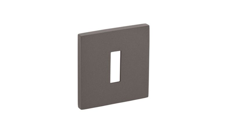 Zestaw klamek na rozetach kwadratowych o grubości 5mm. Łatwy montaż na adapter wewnętrzny na tak zwany „klik”. Podwójny system sprężyn poziomujących rękojeści, zespolony z rozetą podklamkową. Kwadratowy trzpień 8×100 mm. Montaż na dwie śruby M6, niewidoczne po zamontowaniu.