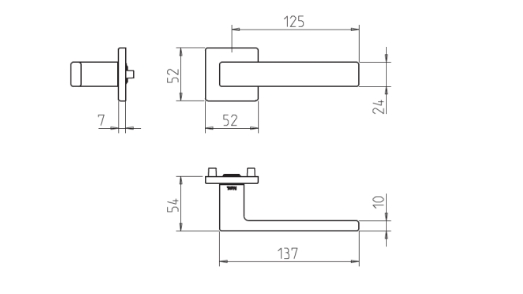 Model na rozecie prostokątnej tzw. ukrytej o grubości 5 mm. Wykony z najwyższej jakości znalu i wyposażony w solidny mechanizm śrub samopoziomujących. Zapobiega to opadaniu rękojeści i daje gwarancję wytrzymałości 200 tysięcy cykli. Atutem klamki jest również łatwy i estetyczny montaż na tzw. „klik” – śruby przelotowe nie są widoczne po zamontowaniu.