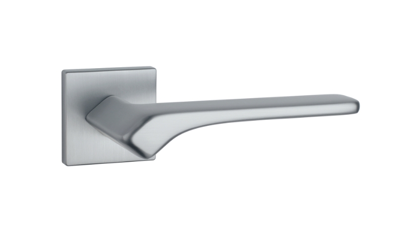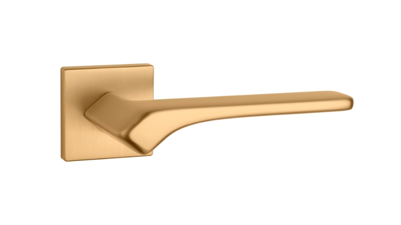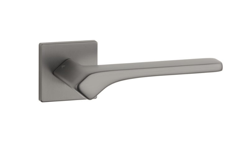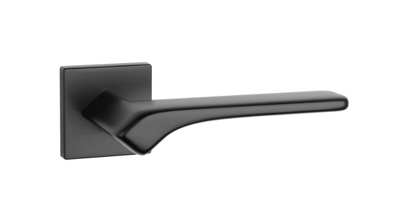 Klamka APRILE Bergenia, rozeta kwadratowa Q slim 7 mm, kolor czarny matowy (BK)