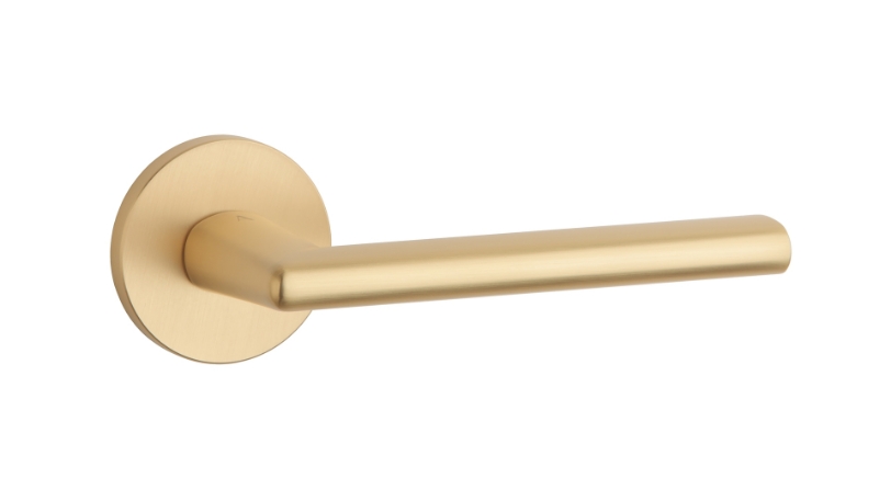 Klamka APRILE Kalmia, rozeta okrągła R slim 7 mm, kolor złoty matowy (GOLD SATIN)