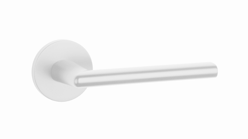 Klamka APRILE Kalmia, rozeta okrągła R slim 7 mm, kolor biały matowy (WHITE)