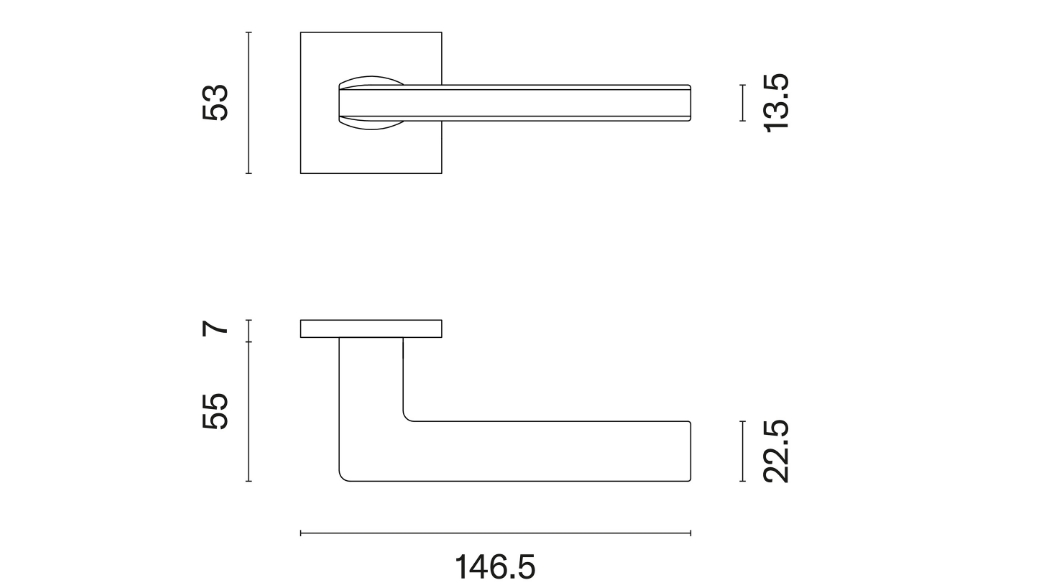 Klamka APRILE Pyrola, rozeta kwadratowa Q slim 7 mm, kolor złoty polerowany (GOLD PVD)