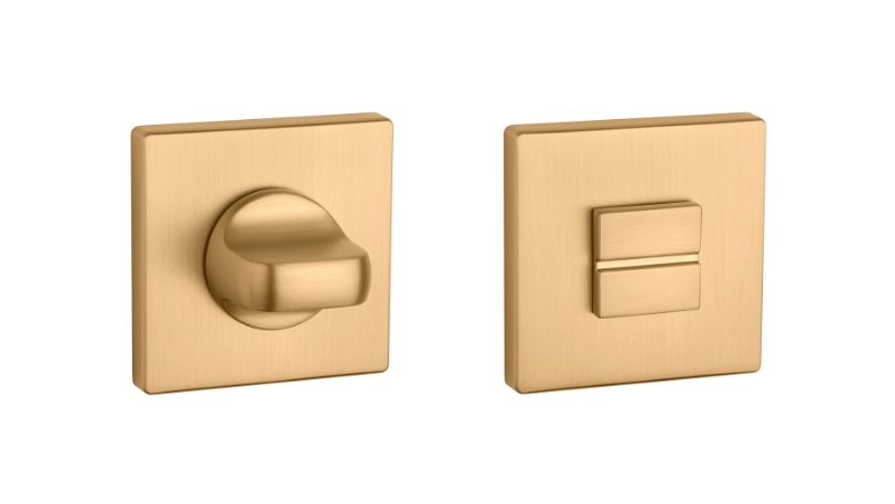 Klamka APRILE Sulla, rozeta kwadratowa Q slim 7 mm, kolor złoty matowy (GOLD SATIN)