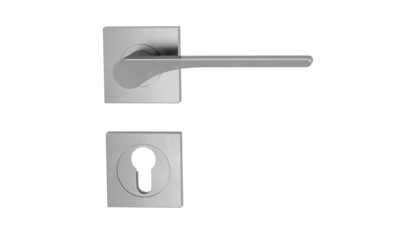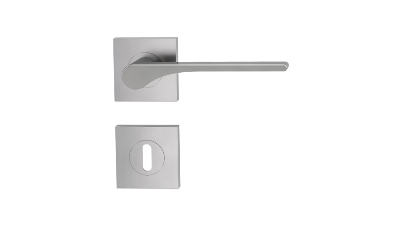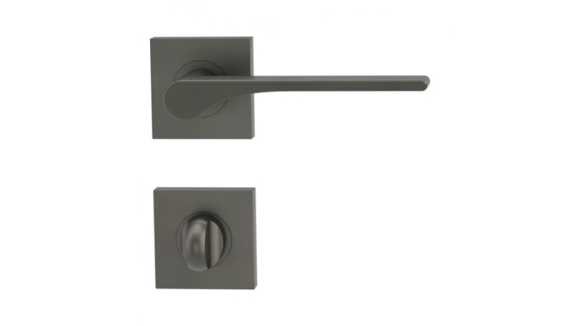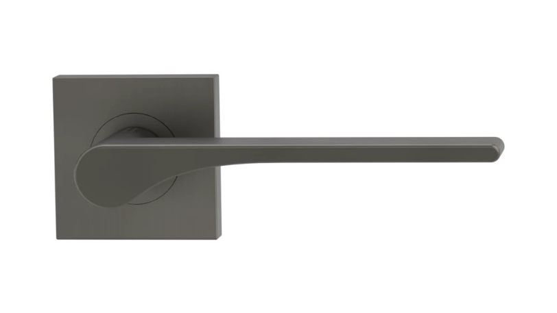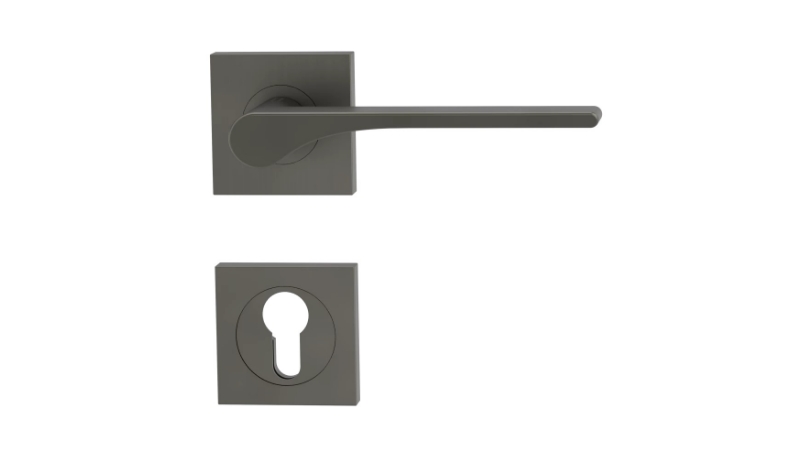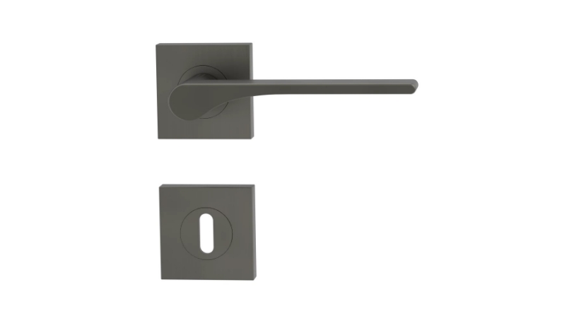 Klamka GRIFFWERK Leaf Light Q, kolor velvet szary, z dolną rozetą na klucz (do drzwi o grubości skrzydła 50 mm)