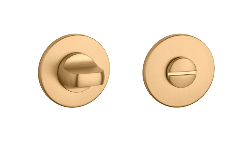 Klamka APRILE Lobelia, rozeta okrągła R super slim 5 mm, kolor złoty matowy (KG)