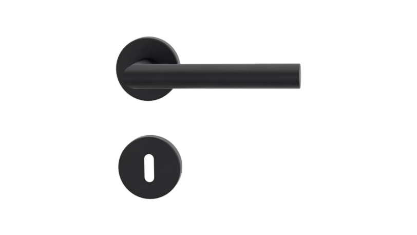Klamka GRIFFWERK Lucia Clip ON, kolor grafitowo-czarny, zdolną rozetą na klucz (do drzwi o grubości skrzydła 50 mm)