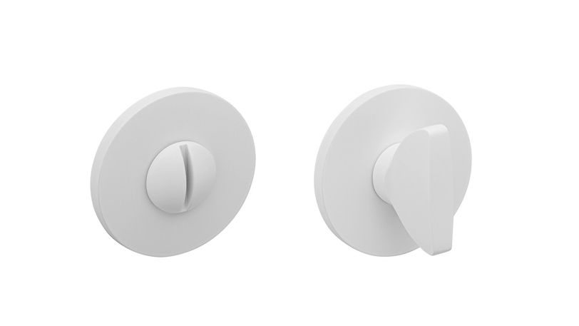 Zestaw rozet do drzwi łazienkowych na szyldach okrągłych Ø52mm o grubości 5mm. Możliwość awaryjnego otwierania z zewnątrz. Trzpień kwadratowy 4x4mm. kolor 186