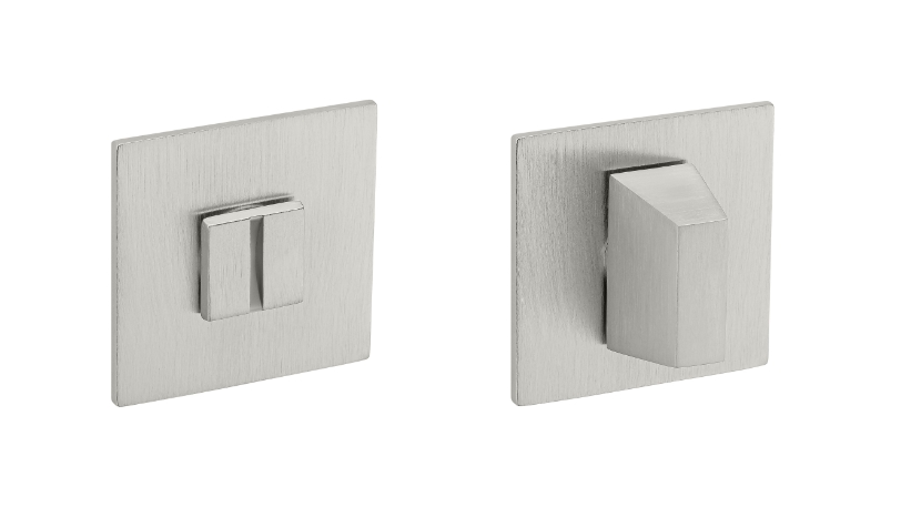 Zestaw rozet kwadratowych Ø52mm o grubości 2mm, do drzwi łazienkowych.
