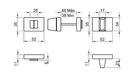 Zestaw rozet prostokątnych o szer. 52mm, do drzwi łazienkowych. Łatwy montaż na adapterze metalowym na tak zwany „klik”.