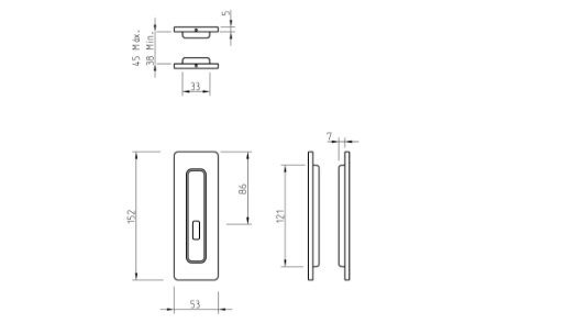 Mosiężny uchwyt do drzwi przesuwnych Tupai 152×53, na wkładkę.