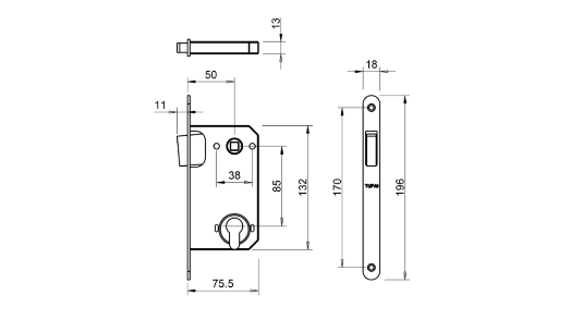 Zamek magnetyczny na wkładkę z rozstawem 85 mm.