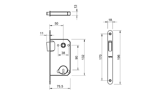 Zamek magnetyczny TUPAI 3599, zamknięcie WC, kolor tytan (141)