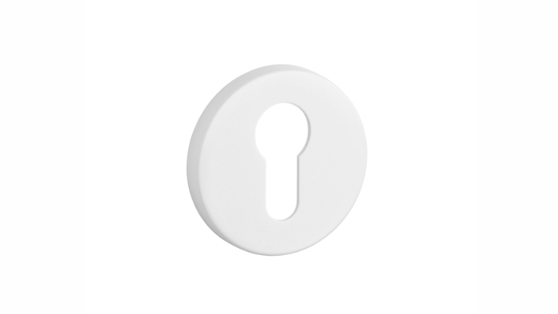 Rozeta APRILE PZ, szyld okrągły R, slim 7 mm, zamknięcie na wkładkę patentową, kolor biały matowy (WHITE)