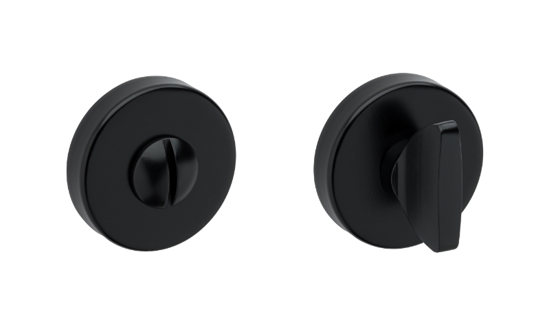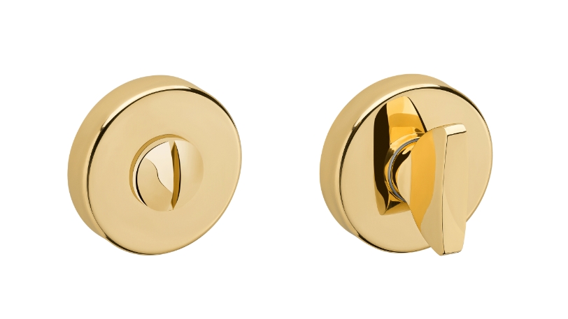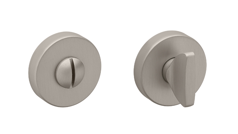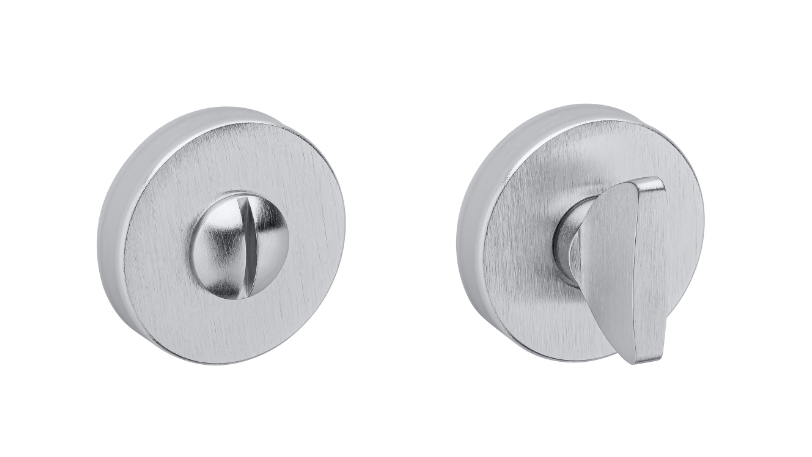 Zestaw rozet okrągłych Ø52mm o grubości 11mm, do drzwi łazienkowych.